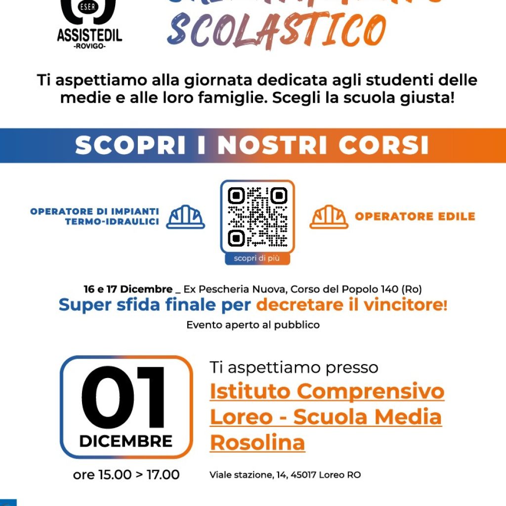 • l’1 dicembre alla Scuola Media di Rosolina (dalle 15 alle 17).