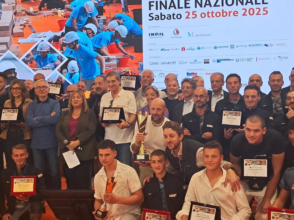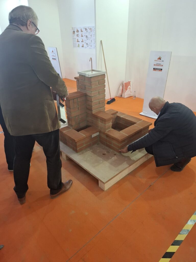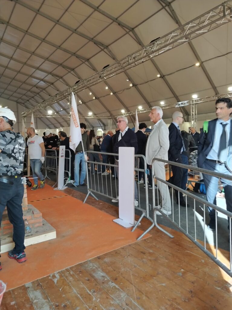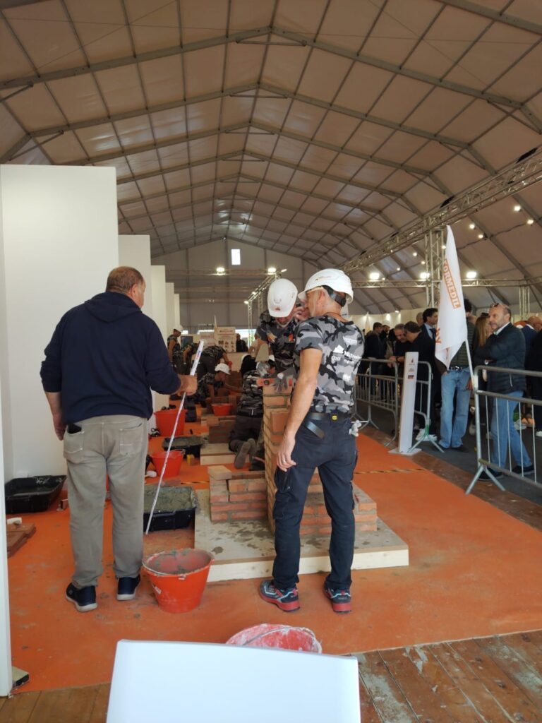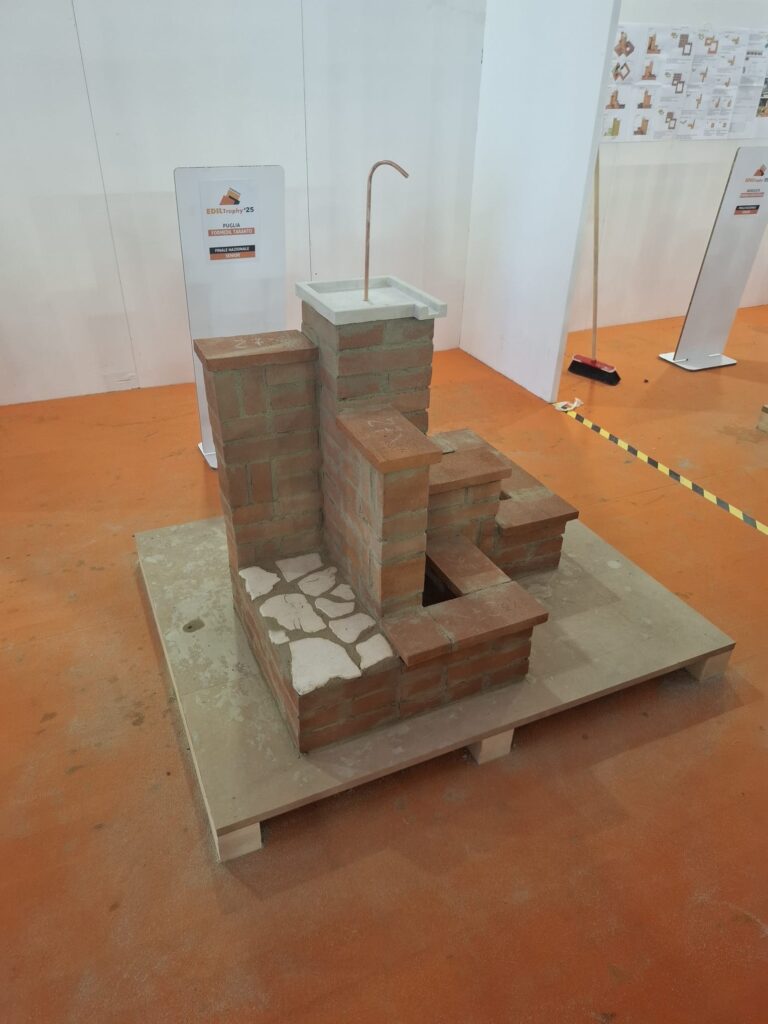 Il 25 ottobre scorso, al SAIE di Bari, si sono battute le migliori squadre d’italia. Il compito, per i senior, era la creazione di una fontana, progettata da due giovanissimi futuri geometri della città pugliese. In appena 3 ore la nostra squadra aveva poggiato a terra gli strumenti, affidandosi alla giuria per la valutazione del manufatto.